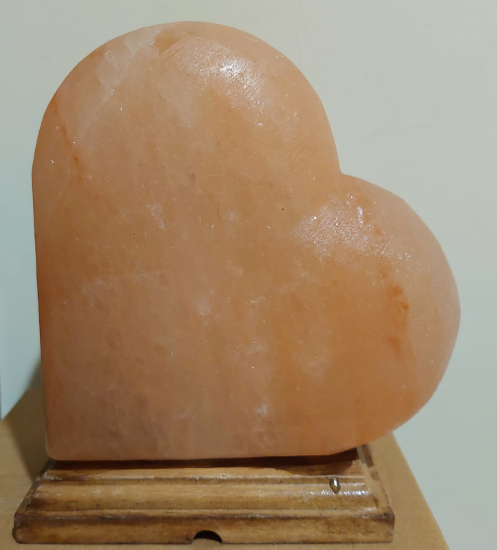 Lampada di sale himalayano rosa scolpita a forma di cuore.