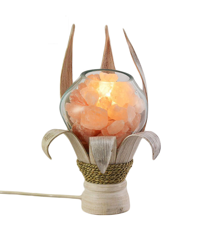 La naturalezza e la sinuosità delle foglie di cocco che sembrano quasi voler proteggere un bene prezioso: il Sale Rosa che con la sua luce calda infonde tranquillità e benessere grazie ai suoi ben noti benefici. L’unione di questi elementi rende queste lampade estremamente delicate ed eleganti.