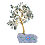 Questi alberi di gemme in agata muschiata sono fatti a mano utilizzando vere pietre semi preziose. Una teoria sostiene che queste pietre siano in grado di alterare l’aura del portatore tramite le vibrazioni emanate.