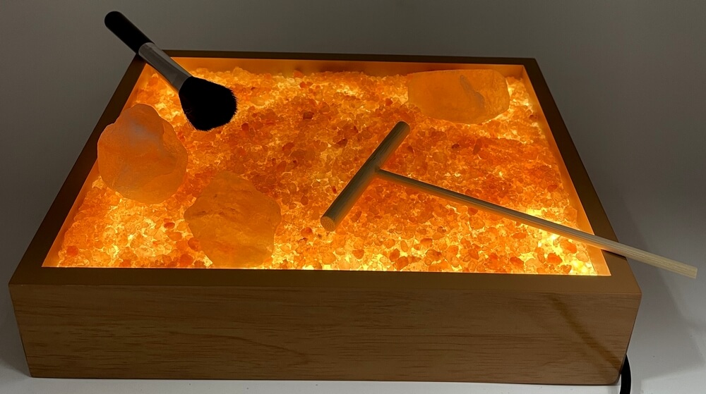 Giardino Zen consegnato con kit di illuminazione elettrica USB.